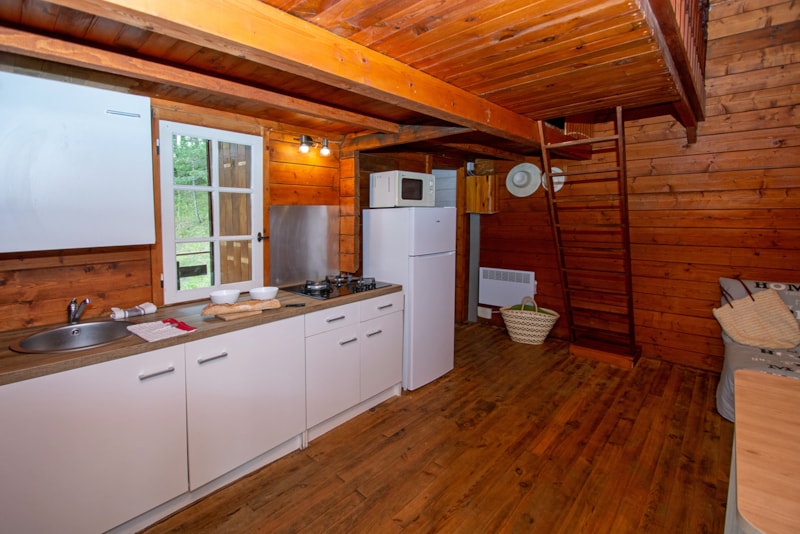 Cottage de charme, typique des montagnes. Echelle de meunier pour accéder à la mezzanine, ne convient pas aux personnes âgées et enfants en bas âge. Hauteur de plafond 1m50 pour la partie mezzanine.